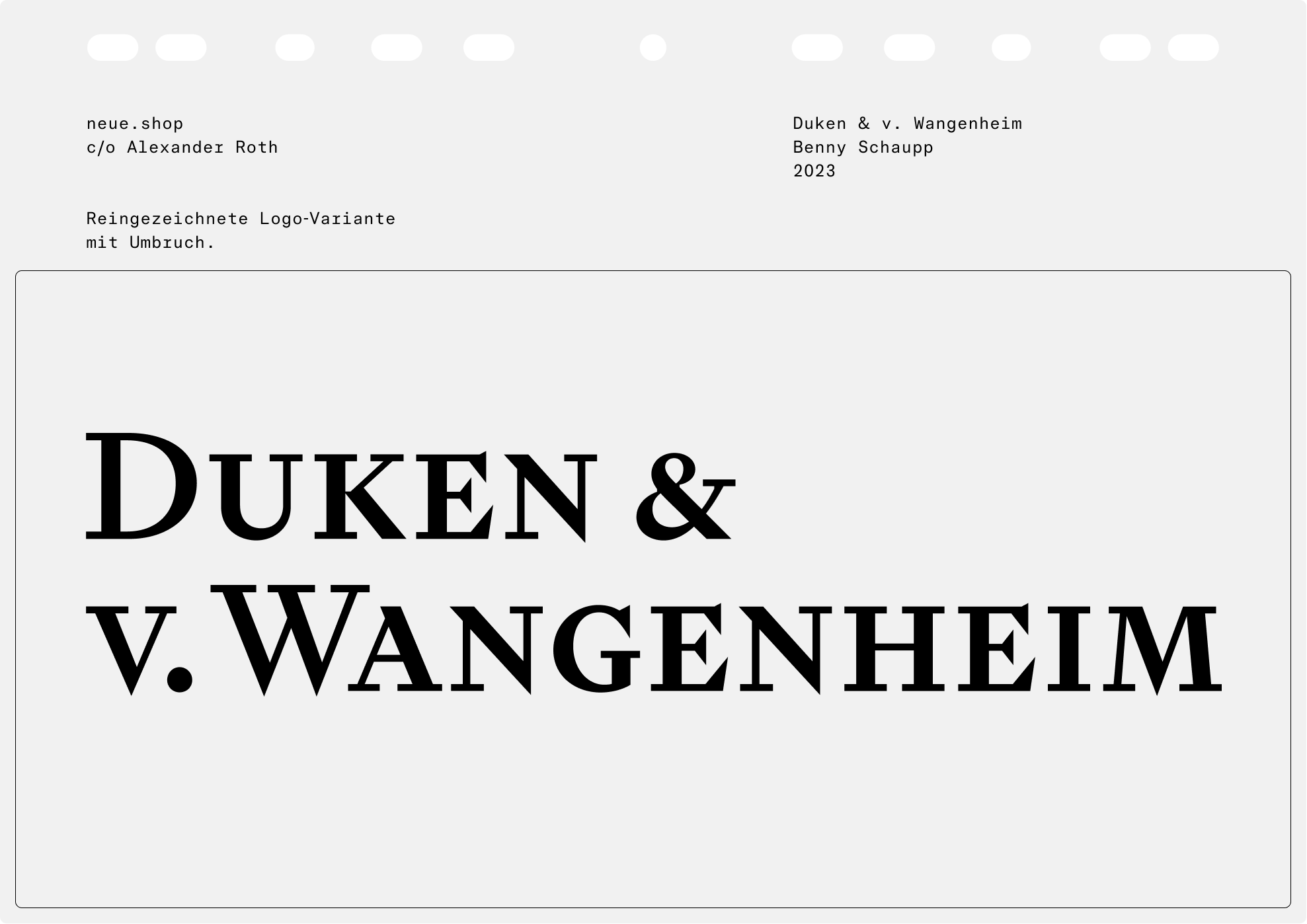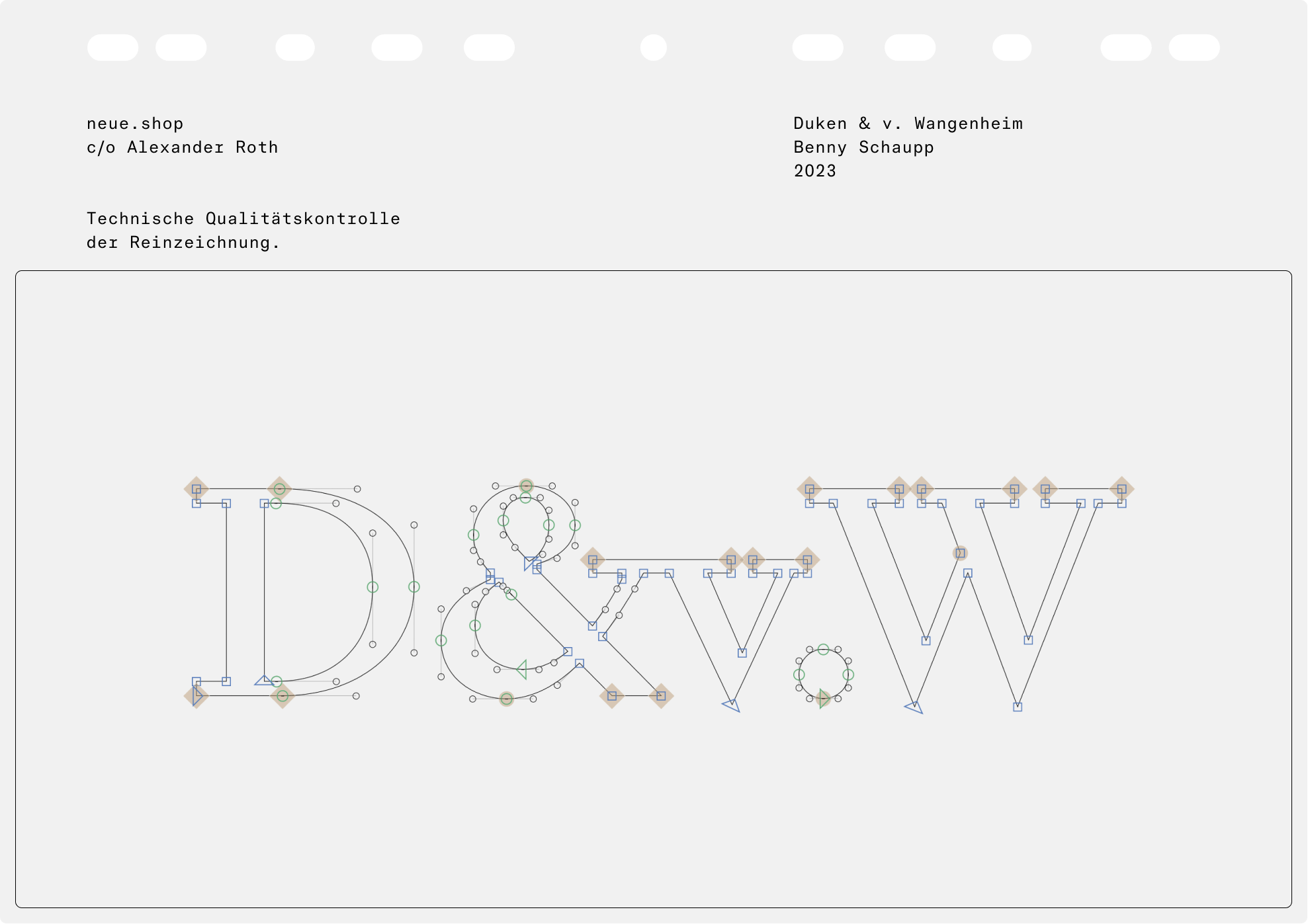Duken & v. Wangenheim is a prestigious real-estate agency for high-end property. We added final typographic touches to the design provided by Benni Schaupp. Three different variants were fine-tuned and exported.