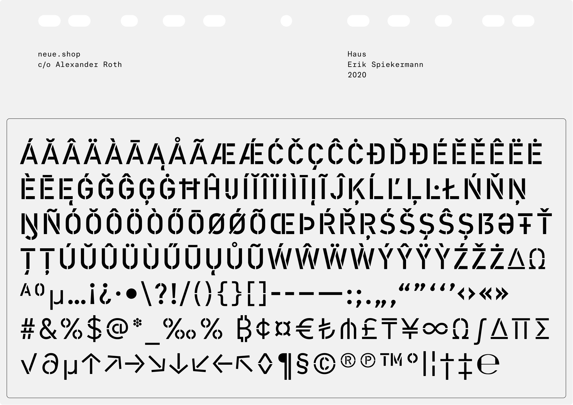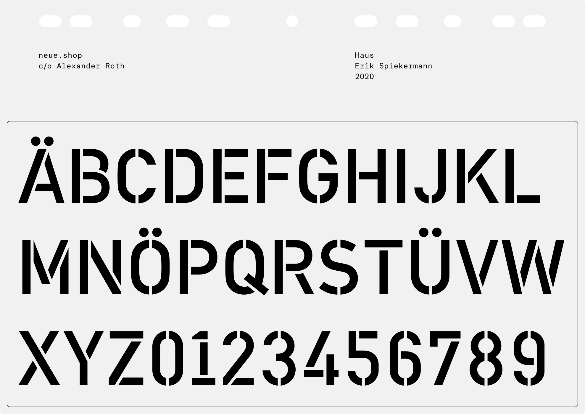 For Erik Spiekermann neue has translated his heavy-duty, laser-cut from the steel plate and colour-coated Industrial House Numbers designed for and distributed by Manufactum into a digital font under the name of Haus.