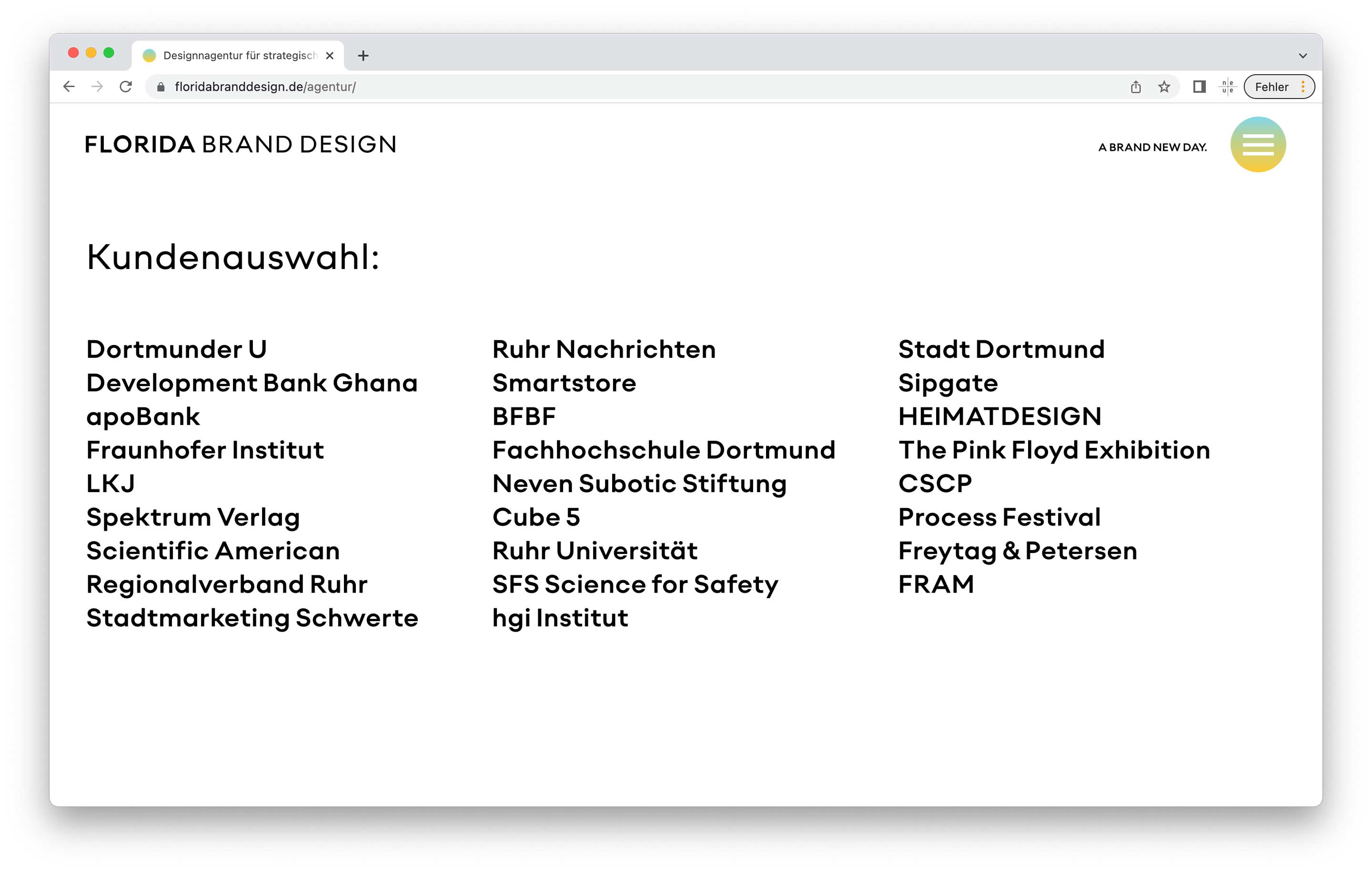 Florida Brand Design is a Dortmund-based branding studio specialized in strategic branding in both physical and digital environments. In addition to their work for high-profile clients Florida is the initiator of the annual Process Festival.