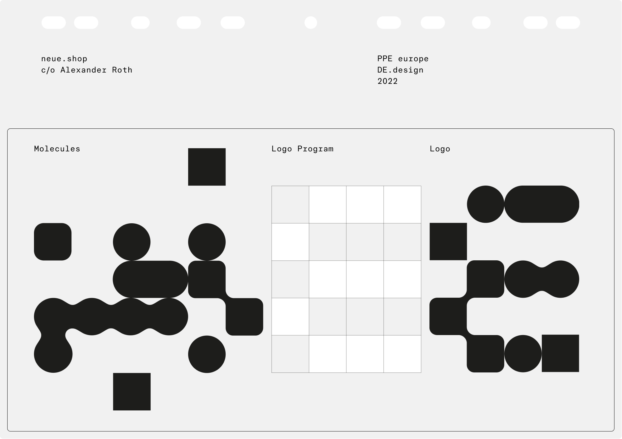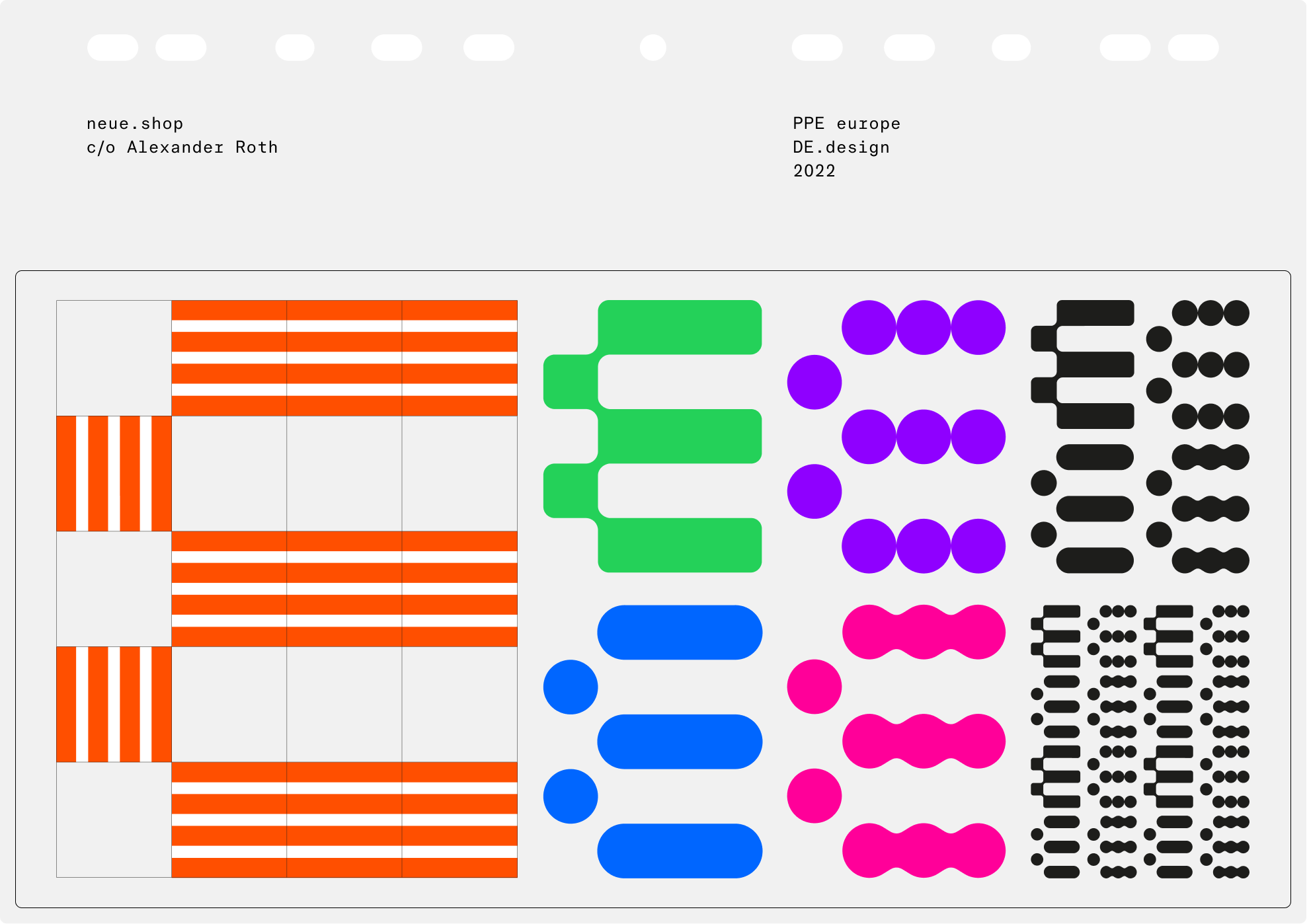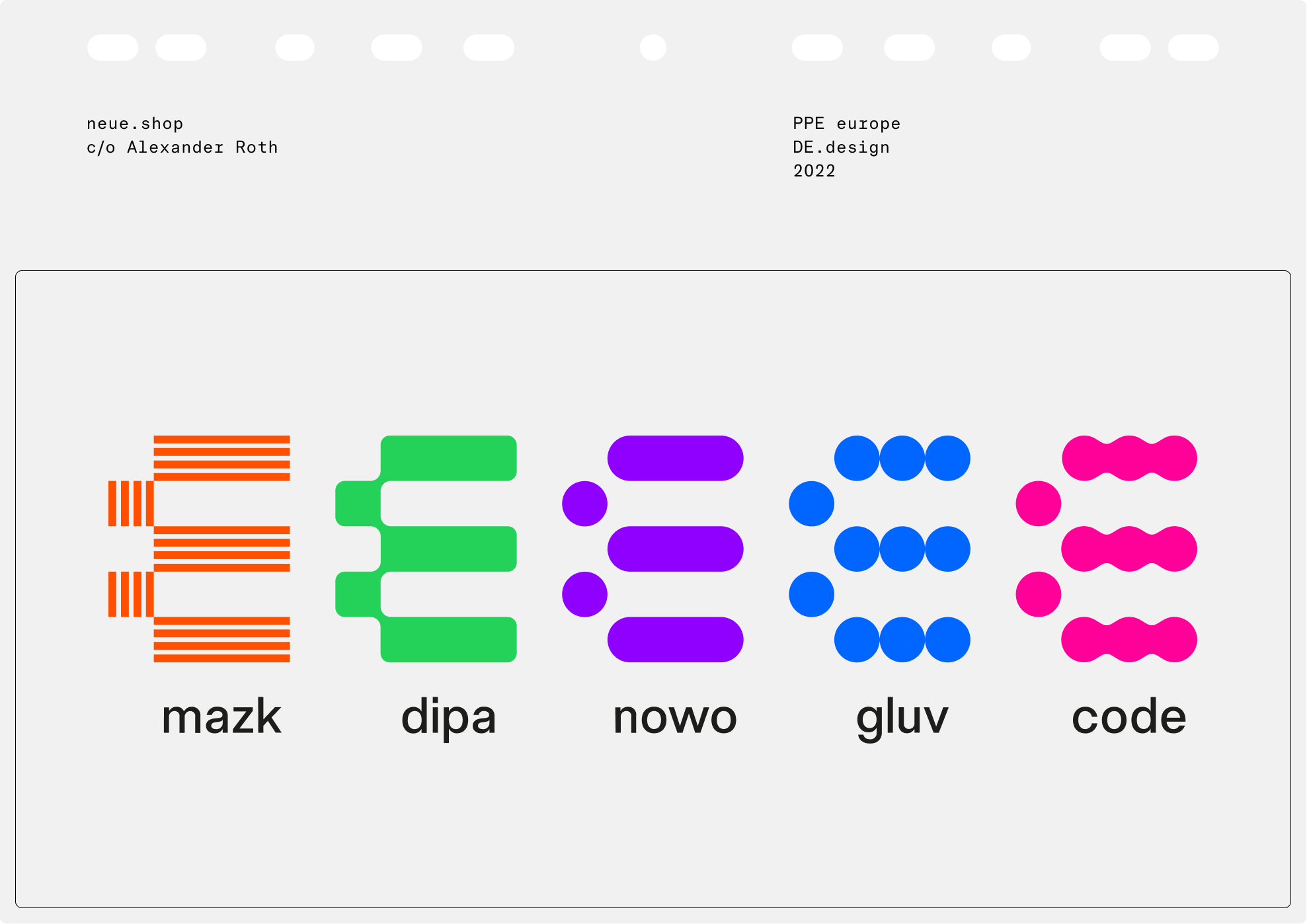 Together with the German design collective DE.design a visual and strategic branding for PPE europe was developed — the leading manufacturer for personal protective equipment in Europe. Custom neue Singular and a permutating logo make up its visual identity.
